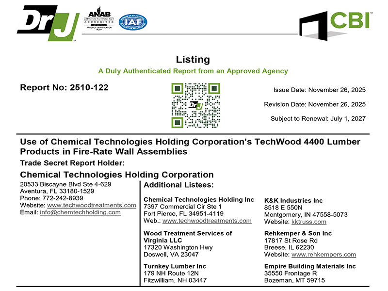 Focused on providing innovative and advanced treatment solutions—TechWood is committed to the development and implementation of lumber protection. We’re dedicated to providing builders, engineers, contractors and the industry with materials for better and safer construction.